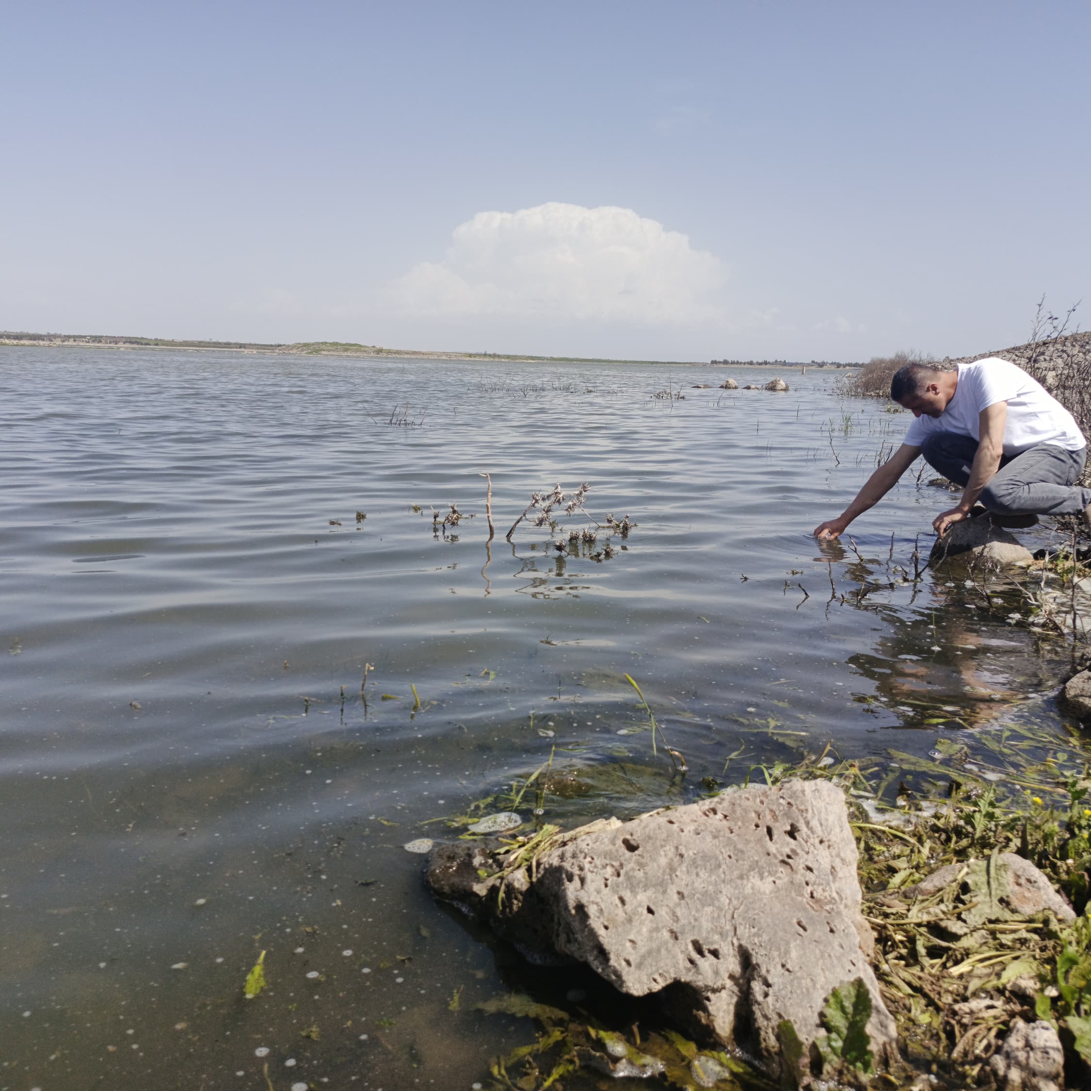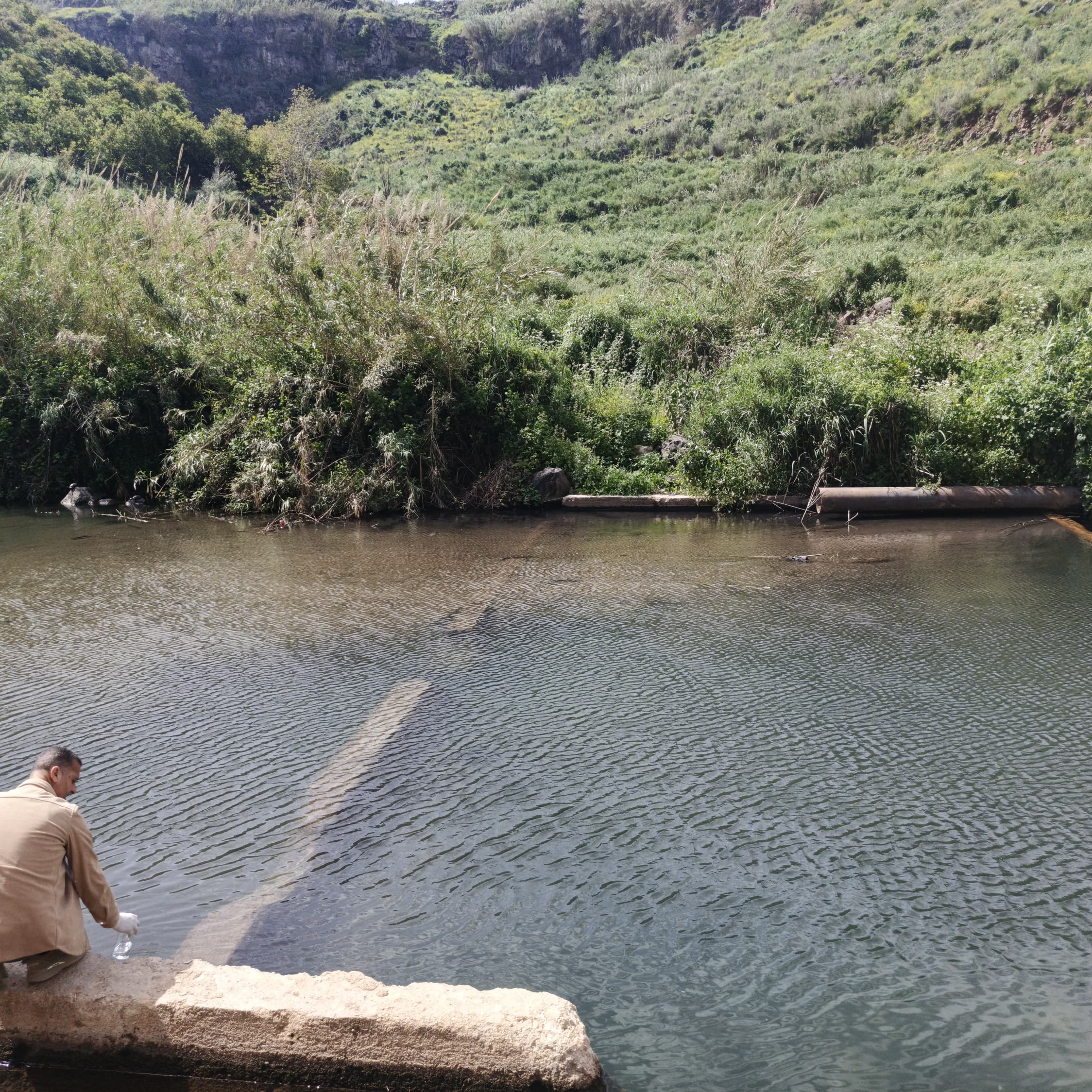 The Water Monitoring Division of the Integrated Management Department at the Daraa Water Resources Directorate conducted a field tour of several springs, dams, and irrigation stations to assess water quality and monitor for any potential pollution indicators.